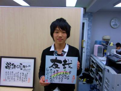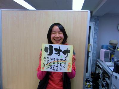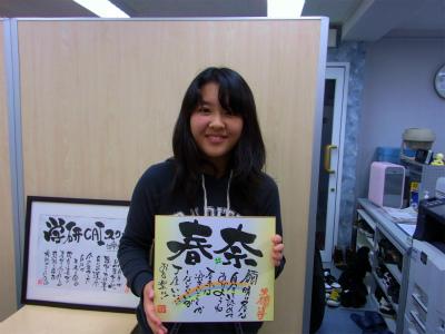 今年は、書道家 齊藤伸和さんに教室まで来てもらい、生徒一人一人に色紙を書いてもらう。